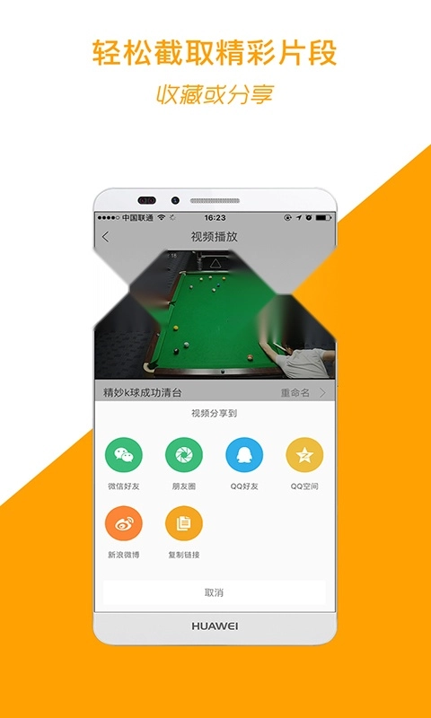 可以将精彩视频分享到微信好友、朋友圈、QQ、QQ空间等多个社交平台。