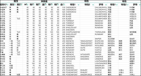 【下图是部分宝可梦图鉴数值总览,提供给玩家参考】