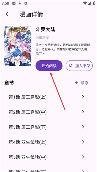 4、在漫画详情页点击【开始阅读】按钮,即可进入漫画的阅读界面,开始浏览内容。