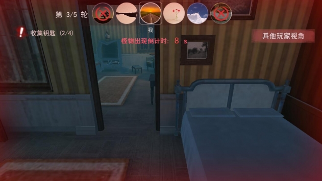4、作为逃脱者的话咱们就要愈加快速的去收集齐所有的钥匙碎片才干逃离。