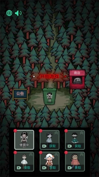 《森林有鬼》是一款像素风格的策略塔防游戏,玩家在游戏里的核心任务是躲避和抵御猎梦者的攻击。游戏玩法轻松,核心在于通过“躺平发育”提升自身防御力,需在倒计时结束前找到安全小屋进入,收集物资加固大门与自身防御。