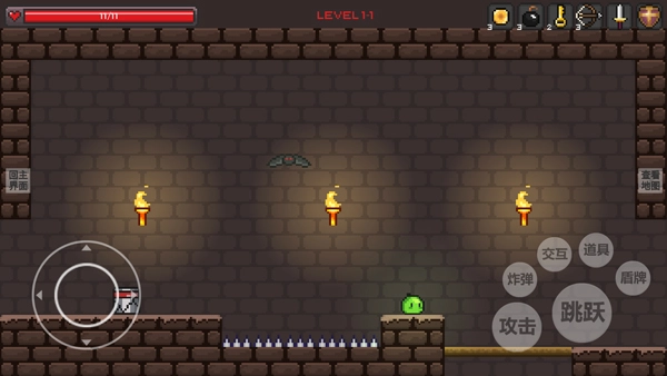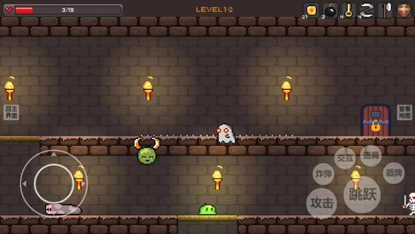 游戏内如图,玩家需操纵史莱姆进行闯关冒险;