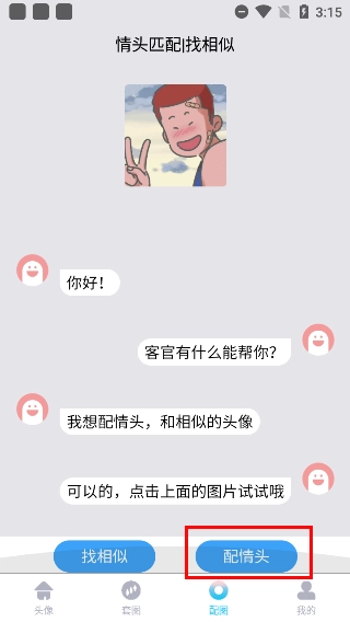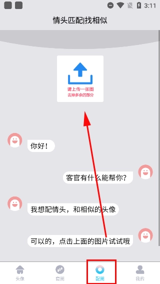 进入“情头匹配找相似”功能板块,点击上传一张图片。