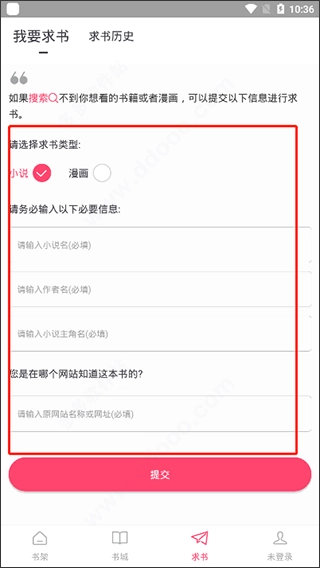 而且当你找不到想看的小说或漫画时,还能在线求书,这个功能十分实用。