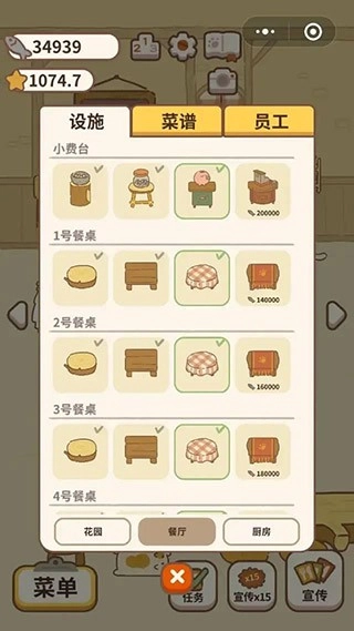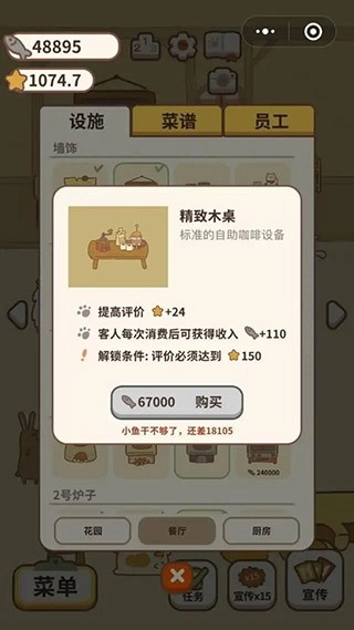 ●使用获取到的小鱼干与星星来购置餐厅设备,以此吸引更多顾客前来光顾。