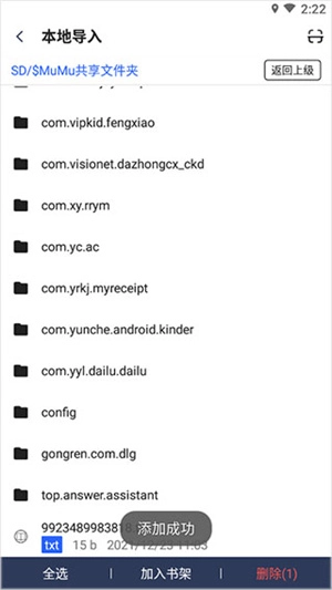 进入文件管理界面,找到存放本地小说的文件夹目录;