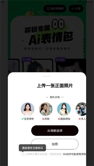 上传一张清晰正面的照片作为基础素材