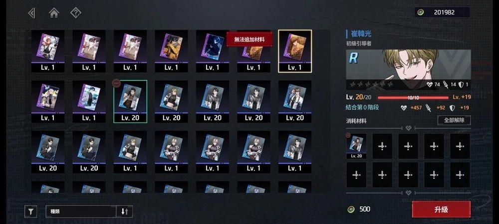 2、将第一张升到满级(20级)的R卡喂给下一张R卡,并循环重复这个操作。