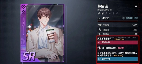 除了主角是Iv2外,其余角色均为Iv1,所以每个异能者都配有专属引导者,即专武,而小情侣组合搭配时能解锁对应的引导效果。
