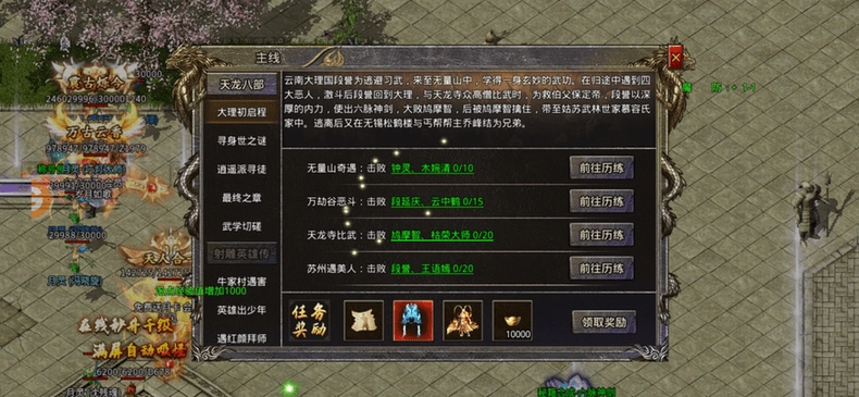 攻速武侠版传奇复刻80版本传奇核心玩法,野外打怪、皇城争夺、公会团战一应俱全,还新增了武侠门派战,玩家能在万人同屏的激烈战斗中,感受争夺武林盟主的畅快体验。比奇城主、大刀守卫等原版角色以武侠风格造型回归,对话和剧情中融入了江湖恩怨情仇,沙巴克攻城战也变成了争夺少林武学秘籍的较量。所有神装都需通过挑战BOSS获取,玩家可以持续发起挑战。