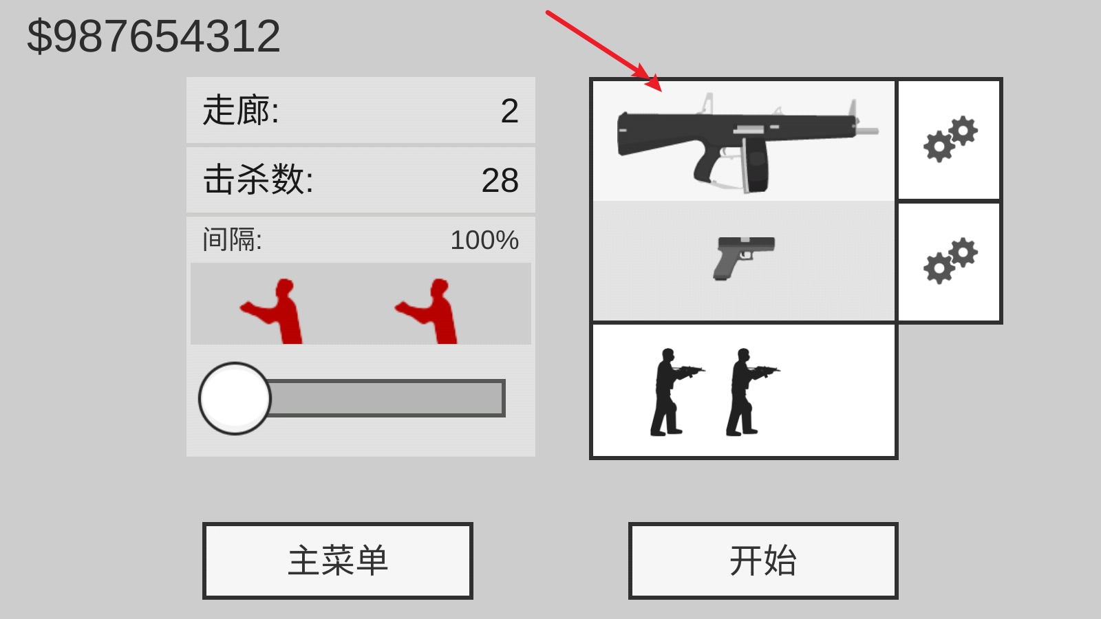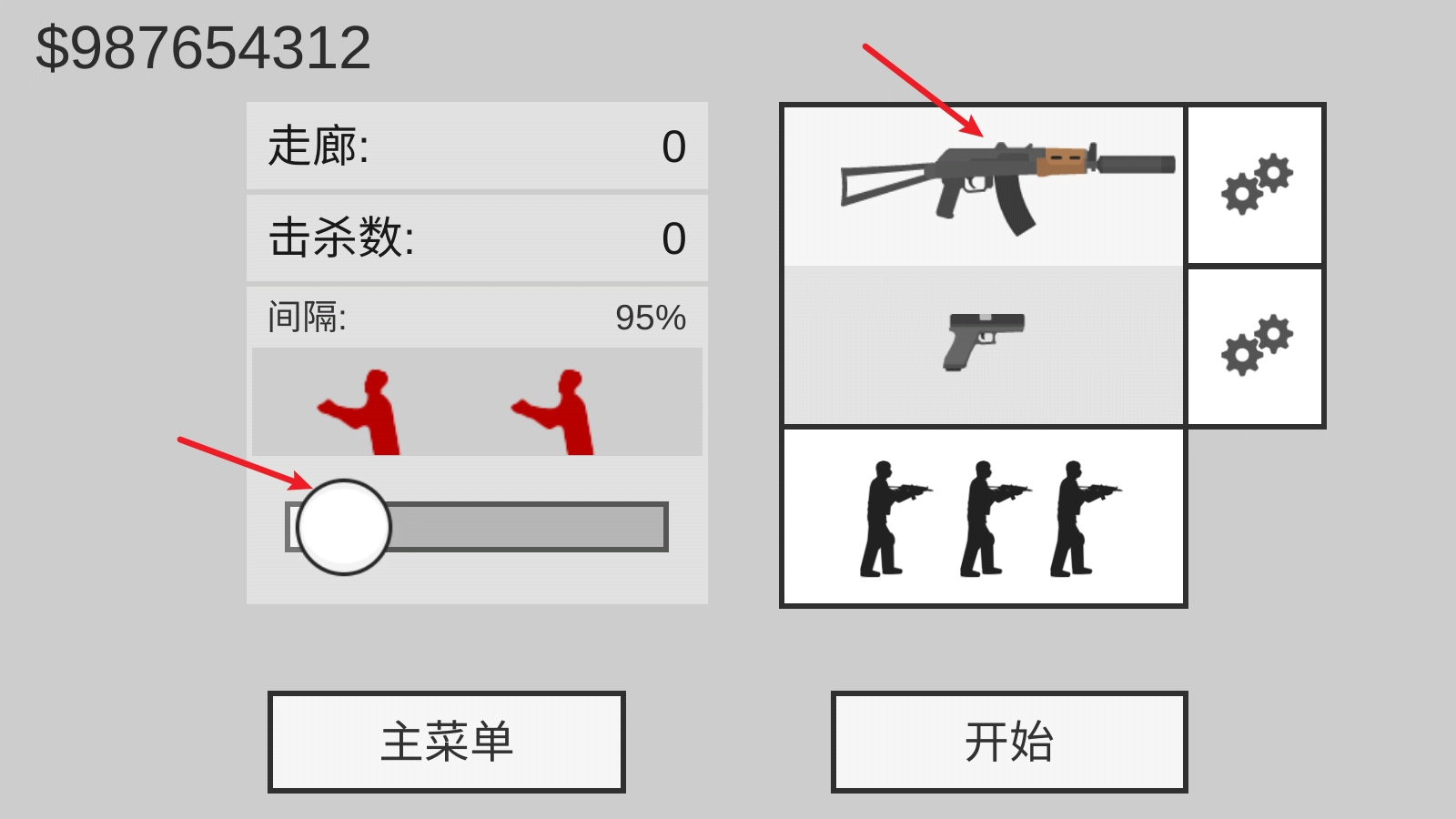 接下来是战斗开始前的准备环节,玩家可以更换枪械或子弹,还能调整僵尸出现的频率。