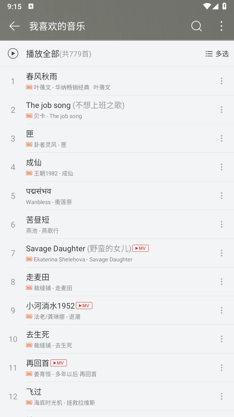 3、里面的音乐播放列表模式,可以自由的上下滑动,让用户找到自己喜欢听的音乐资源,很是不错。