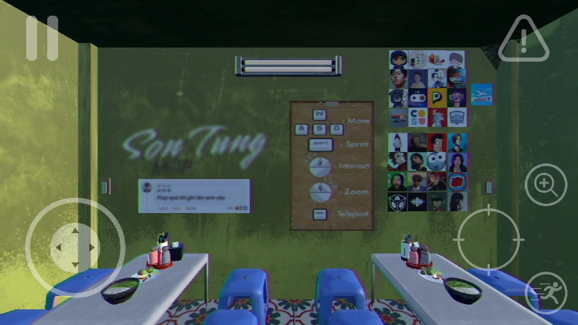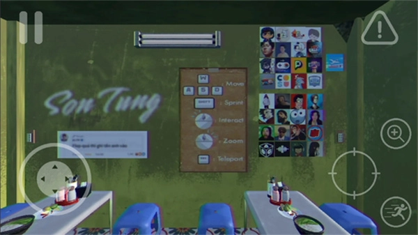 3、进入正式操作界面后,屏幕左侧的虚拟摇杆用于控制角色移动方向;右下角的功能按钮可实现奔跑功能,在部分场景中还能起到返回作用。界面里带有瞄准镜图标的是“交互键”,当靠近可互动的角色或物品时,点击该按钮就能触发对话、拾取或调查等互动操作。