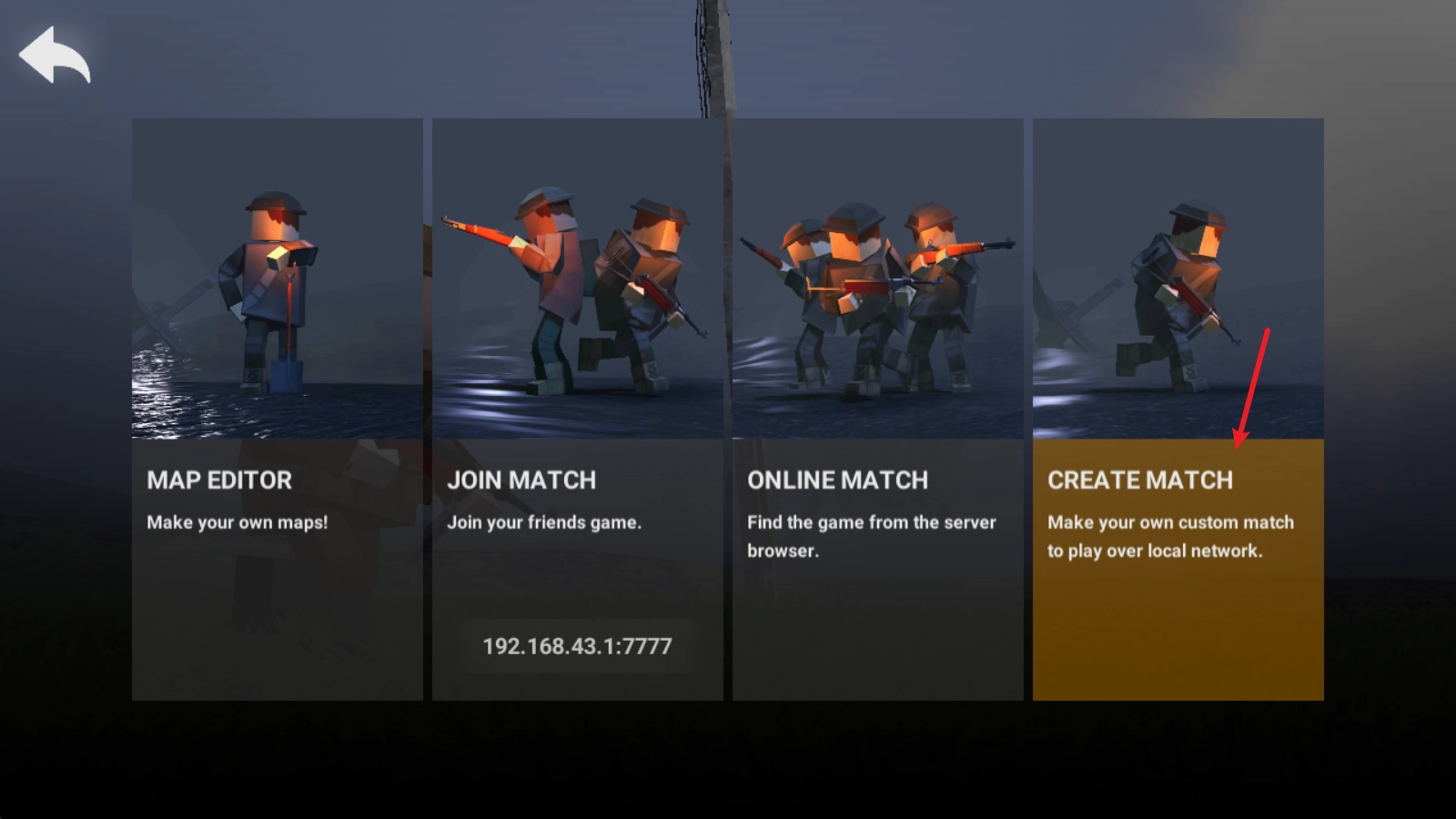 进入游戏后,点击“play”按钮开始游戏,接着需要选择游戏模式,这里我们选择创建比赛模式,与AI对手进行对战。