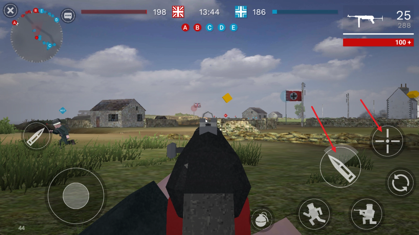 当遭遇敌人时,点击右侧的瞄准键就能架枪瞄准,再点击子弹键即可开枪射击。