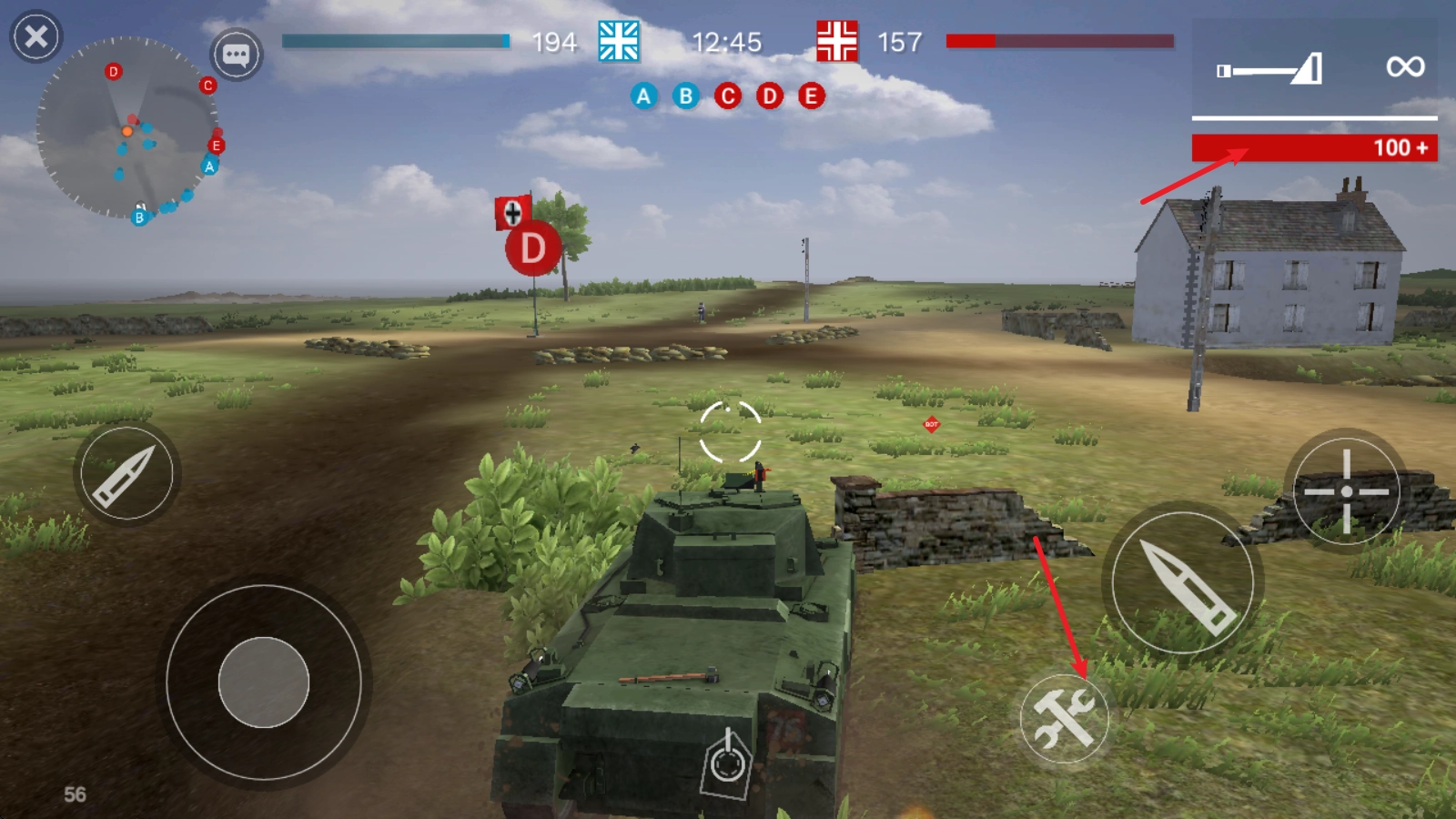 在画面的右上角能够看到坦克的生命值显示,一旦生命值降低到一定程度,我们就必须对坦克展开维修工作。
