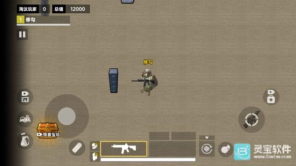4、通过滑动屏幕上的轮盘进行移动,点击相应按钮进行互动和攻击。通过玩家自己高超的射击技术来击败更多的敌人,从而逃生吃鸡。