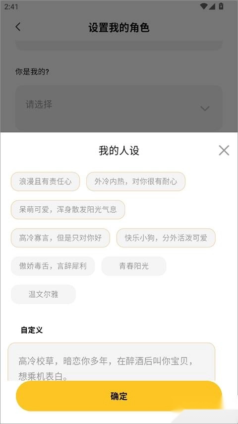 3、还可以修改小乖人设,浪漫型、傲娇型、呆萌型都有