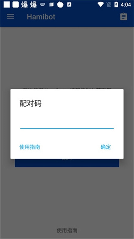 3、点击「添加机器人」,记下配对码