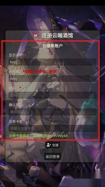 3、一次输入相应的字段,卡密需要购买