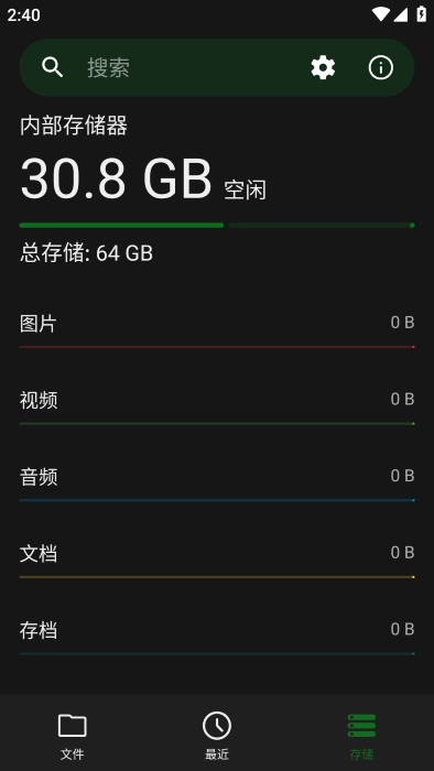 存储的大小一目了然,图片、视频、音频、文档等都有。