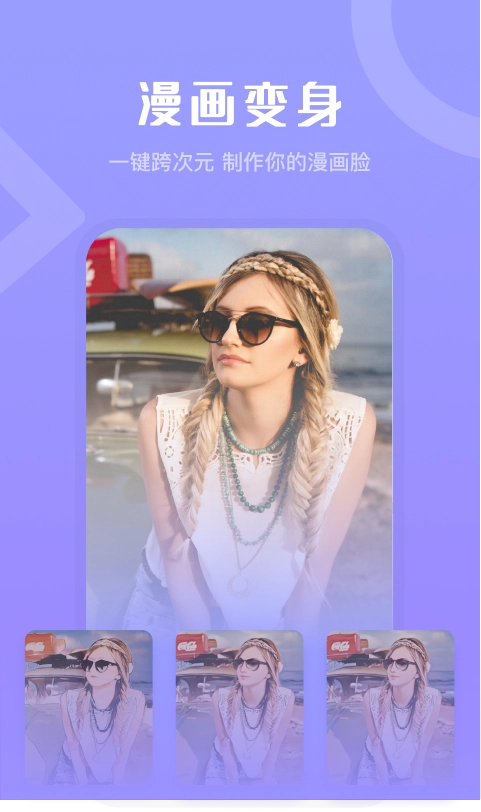 美片相机软件具备一键跨次元的功能,能为你打造专属卡通脸,让你直接开启变身操作。