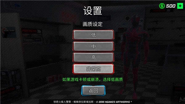 进入《蜘蛛侠绳索英雄》游戏后,你能够依据设备的性能来调整画质相关的设置。
