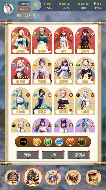 4、弟子培养自由度颇高,可依据弟子的天赋匹配适宜的功法与发展方向,搭配种族组合的羁绊效果,打造专属的美少女修仙团队,具备十足的战略性。