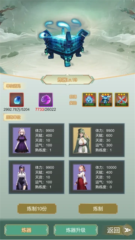 1、打理宗门各项资源,提升灵田、灵矿与修炼塔的等级,按时收取灵药、矿石等产出物,借助这些资源开启炼器、炼丹的功能,为宗门的发展供给物资保障。