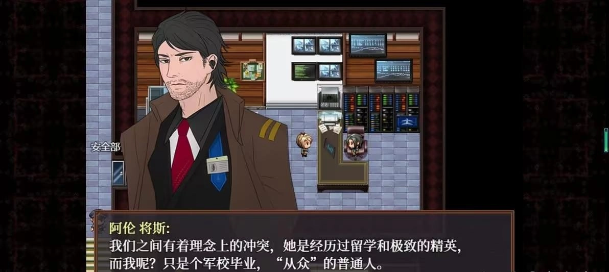 9、杰丝晚上回到家中,突然有人敲门,一个棕色风衣的强壮男人和两个特工走了进来。杰丝认出了他就是之前那天晚上抓捕间谍时露面的官员。男人叫阿伦将斯,时任红月教安全部部长,杰丝以为他把自己当成间谍了,但阿伦解释不是这样,他想和杰丝有一个交易。原来,红月教内部正在搜查各部长官的违法违纪行动,阿伦表示杰丝凭借撒切原国籍和家庭背景而得到了不少官员的“特殊关照”。所以阿伦安排杰丝利用主管的信任,四处收集主管的情报黑料,他则负责带队抓人。于是杰丝得到了安全部的特权,平时阿伦在监控中指示行动,保安也不能干涉杰丝的生活和行动。