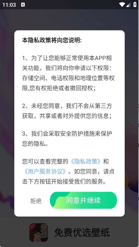 用户首先在本站免费挑选心仪的壁纸,同时需要同意隐私政策和用户协议。