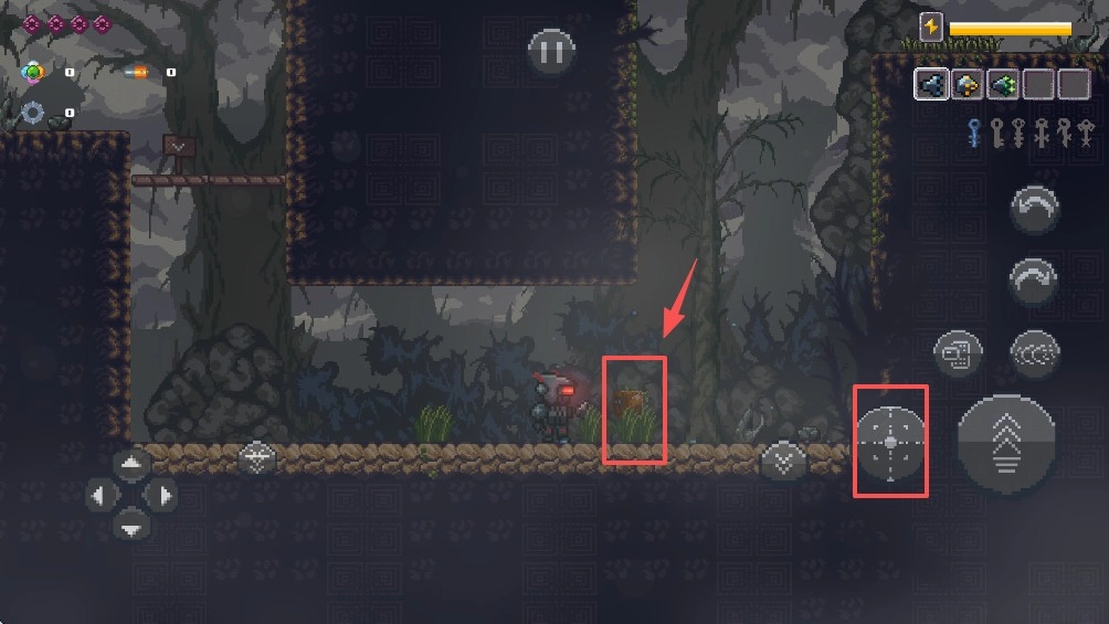 2、进入关卡后,通过左侧的虚拟方向键控制角色移动,右侧则包含攻击、跳跃等操作按钮。