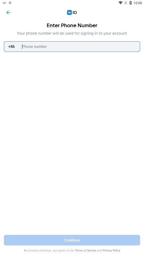 在手机上打开vk中文版,进入登录界面中。