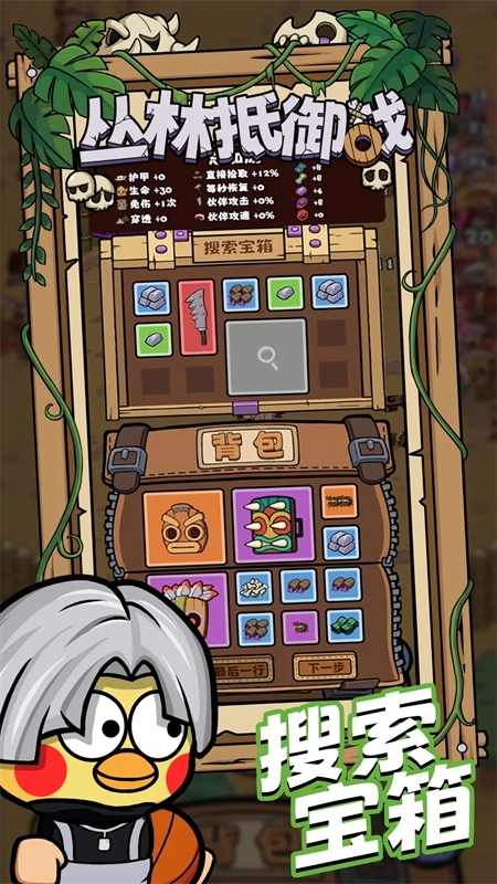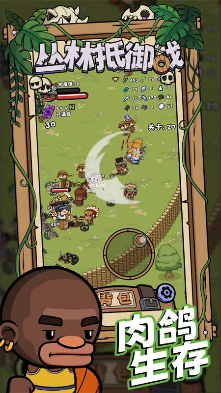 丛林抵御战是一款Roguelike生存冒险手机游戏,结合了俯视角动作战斗与局内探索收集生存玩法,其特色在于支持自定义装备池设计——玩家可自主选择战局中能获取的武器装备池,所有获得的武器装备都将从预设池中抽取,这让角色养成与经营过程里获取所需物品更轻松,也能让玩家拥有更优质的游戏体验。此外,游戏还集结了众多以现实知名热梗为原型打造的角色,既有敬爱的牢大、爱打篮球的坤坤,也有擅长“做人”的汉尼拔和卡其脱离太的守卫,为玩家的战斗冒险增添了更多趣味。对丛林抵御战感兴趣的小伙伴可别错过,赶紧去体验游戏吧!