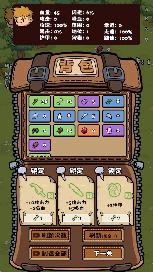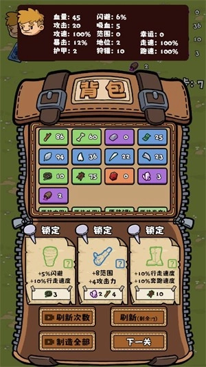 1、结合肉鸽和生存的玩法,既有快节奏的俯视角动作战斗体验,又有收集材料,制造装备的生存玩法。战斗节奏类似《土豆兄弟》,游戏设定则参考了其他生存游戏。是一款可以一直战斗爽的生存游戏。