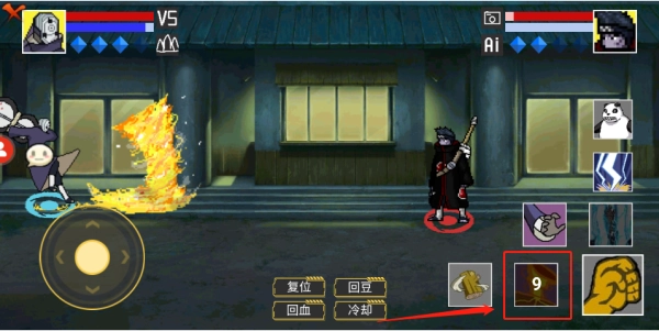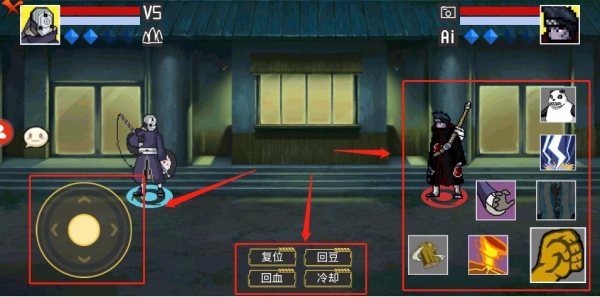 3、通过操控游戏画面左侧的虚拟手柄,能够让人物实现上下左右的移动;画面中间的区域可用于调整人物站位或状态;右侧则是人物的技能按钮,助力玩家赢得游戏胜利。