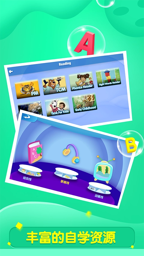 1.海量的正版英语绘本读物,并提供多样化的学习方式,帮助有效提升。