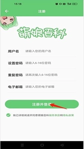 输入个人信息与秘密,点击“注册并登录”选项即可。