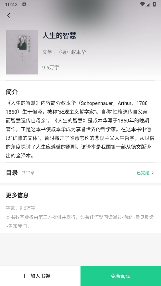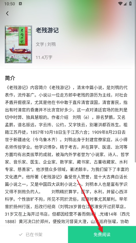 进入小说详情页,点击"免费阅读"。