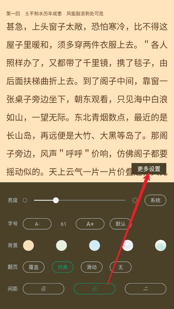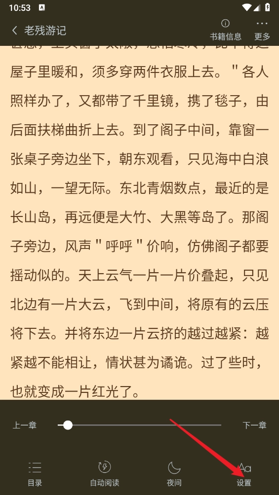 在小说阅读页面,点击右下角"设置"。