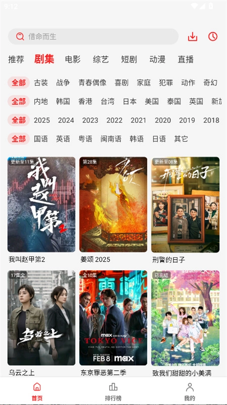 资源分类展示:首页顶部栏把剧集详细划分为电影、综艺、动漫等类别,便于用户依据喜好迅速找到目标内容。