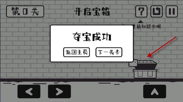 4、第0关我们长按左边的第二个按钮,一直右移,碰到宝箱就可以打开,直接通关。