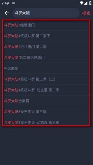 在搜索栏搜索要看的动漫,有多个下拉推荐;