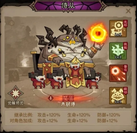 魔蛋堪称侍从界的“六边形战士”,兼具爆发与续航双重优势;三维属性直接拉满,有着125%攻击、115%生命与115%防御的亮眼面板;主动技能可召唤“恶魔军团”,军团中士兵负责扛伤、统领则能施加buff;此外还能通过光环提供35%急速与35%回能效果,说是“一人成军”也毫不夸张。