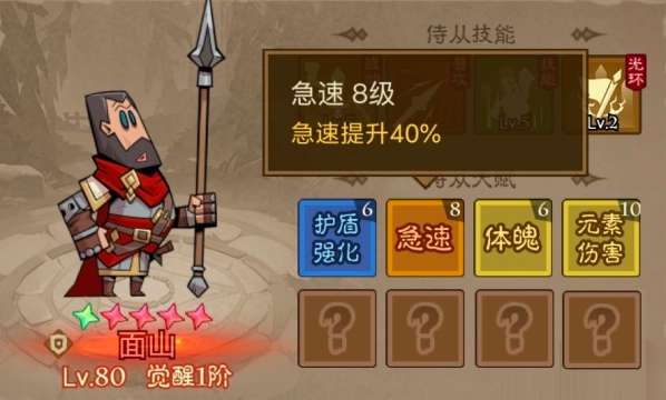 被动技能:最多可装备3个,装备后能获得不同的属性加成