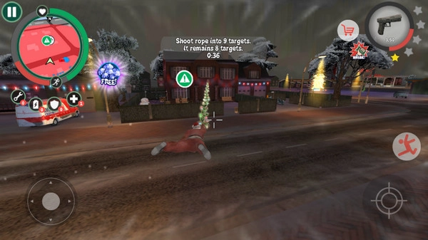 1、这是一款扮演圣诞老人自由犯罪的手机游戏,在开始之前可以为自己的圣诞老人配好装备