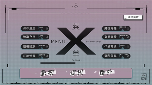 2、接下来我们可以点击右上角的菜单按钮,从中选择保存进度、读取存档、剧情回放、作品商城等多种功能。