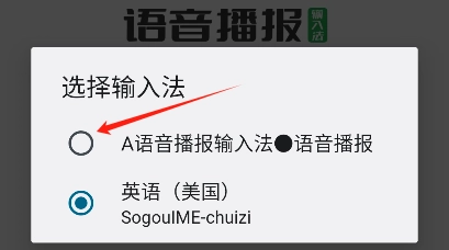 然后进入设置界面开启输入法,之后返回并点击“切换到语音播报输入法”选项。