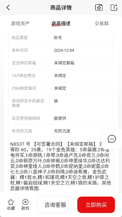 从列表里挑选出我们心仪的游戏账号,点击即可查看其详细信息。