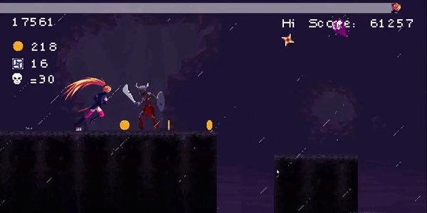1、高速反应考验:玩家要操控女忍者施展跳跃、滑铲、二段跳等动作,在高速行进过程中避开地面尖刺、旋转刀刃这类致命陷阱,一旦稍有犹豫就可能遭遇失败。